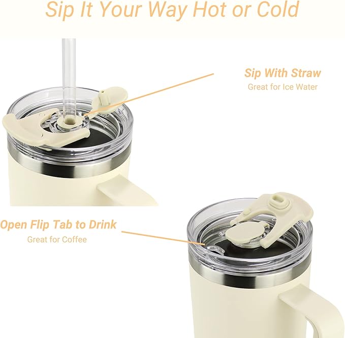 - ✅ VACUUM INSULATION: Our vacuum thermos insulated tumbler, coffee cup with splash proof lid keeps it sweat-free from the outside, no matter what you drink. The ultimate portability and comfort large mouth makes it easy to drink.