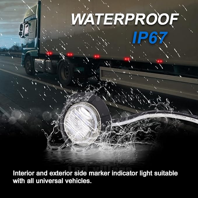 - ✅ Package contains 10 pcs of 1-1/4 Inch “clear lens red” round trailer side indicator marker lights 12V DC suitable for Truck, Caravan, Bus, Pickup, RV, Lorry, Boat etc.