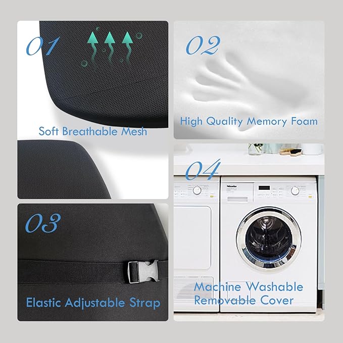 - HIGH QUALITY BUCKLE & ELASTIC STRAP - Lumbar pillow are designed with high-quality elastic straps and adjustable buckles to provide firmer fixation and support. The elastic straps of the lumbar support help keep the lumbar pillow in place and prevent it from moving or sliding during use. This design feature ensures that the back pillow remains in the correct position, providing optimal support for the lower back and promoting better posture.