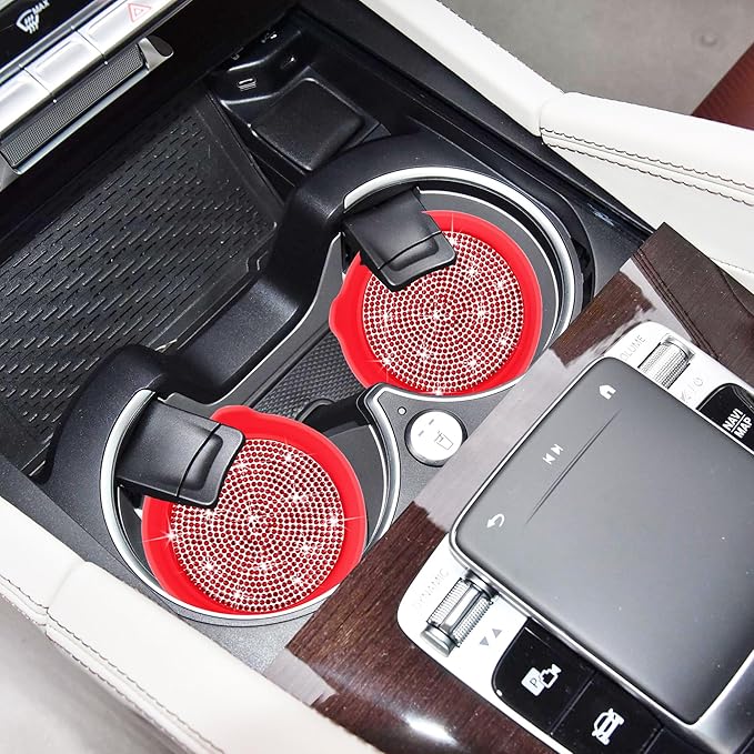 Amooca Car Cup Coaster Universal Non-Slip Cup Holders Bling Crystal Rhinestone Car Interior Accessories 2 Pack Red Whole Rhinestone