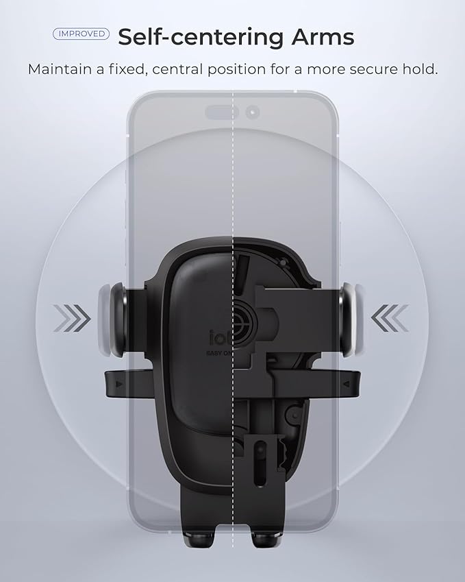 - Easy One Touch Mechanism: Mount and retrieve your phone in seconds thanks to the patented Easy One Touch mechanism. Simply squeeze the release bars to open the locking side arms and press your cell phone against the Easy One Touch trigger button. The arms will close automatically to secure your device in place.