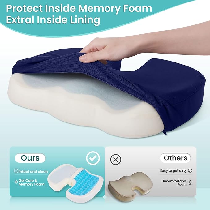 - 【Soft Gel Cushion】The gel design cools off seat instantly and prevents heat accumulation after long sitting. Great for heat intolerant or high temperature people and loved by all in summer days Gel core also enhances the density of cushion for greater support.