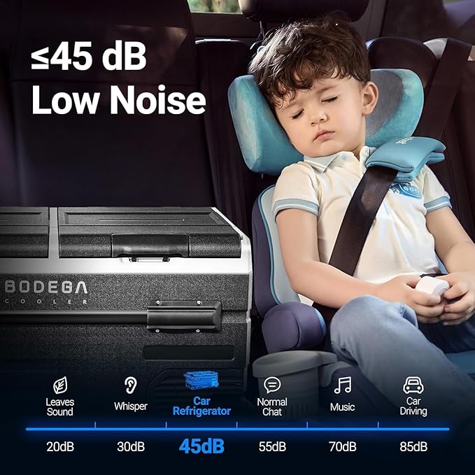 - APP CONTROL & VOLTAGE PROTECTION:Upgraded WiFi connection car refrigerator. BODEGACOOLER car fridge with APP control, you can control the freezer from distance or in car.Intelligent temperature control function to meet the required temperature of various ingredients. H/M/L 3-level low-voltage protection:When the measured DC voltage falls below the cut-off value, the compressor will off to prevent the vehicle from running out of power