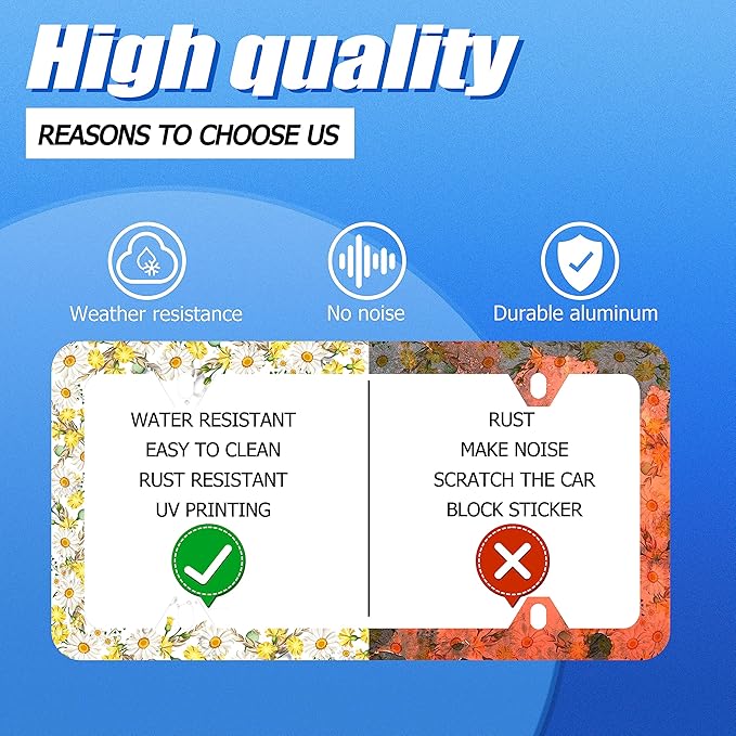 - Design:Use Advanced digital printing Protects license plate frames from Whether it's a car wash, heavy rain or hot weather, it still looks brand new,Let your car still be unique and stylish while driving on the road