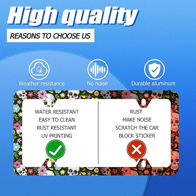 - Design:Use Advanced digital printing Protects license plate frames from Whether it's a car wash, heavy rain or hot weather, it still looks brand new,Let your car still be unique and stylish while driving on the road