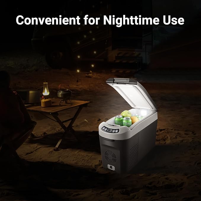 - User Friendly Design: The 12v cooler with a adjustable shoulder strap allows you to easily carry or bring this personal fridge anywhere you want to go on your outdoor trip. It is perfect for storing and keeping items cool while on the go, ideal for travel and outdoor activities. The BODEGACOOLER small portable refrigerator also has a built-in LED light, allowing you to easily access your drinks or food, even at night