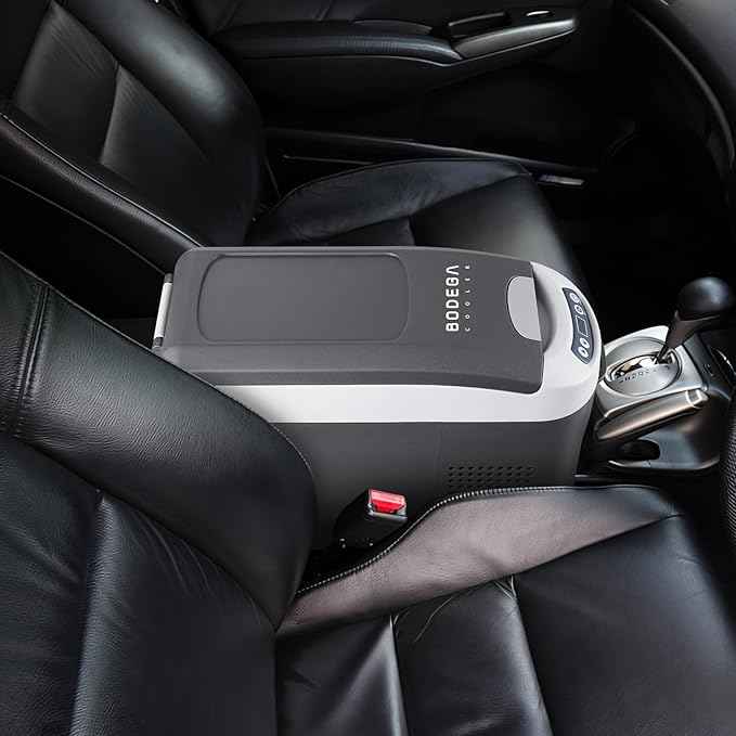 - Car Armrest Refrigerator: BODEGACOOLER 12v car refrigerator is designed to be installed on the car armrest. This portable fridge is compact and lightweight. It can serve as an armrest between the driver and passenger seats, and it fits perfectly in the rear seat or trunk of small cars