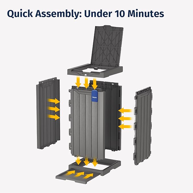 - ๐๐ถ๐ด๐ต ๐ค๐๐ฎ๐น๐ถ๐๐ ๐ฅ๐ฒ๐๐ถ๐ป ๐ ๐ฎ๐๐ฒ๐ฟ๐ถ๐ฎ๐น: The outdoor garbage can is made of durable and recyclable resin material that is waterproof and fade resistant. The panels are sturdy and will not bend, warp or break easily and are highly weather resistant