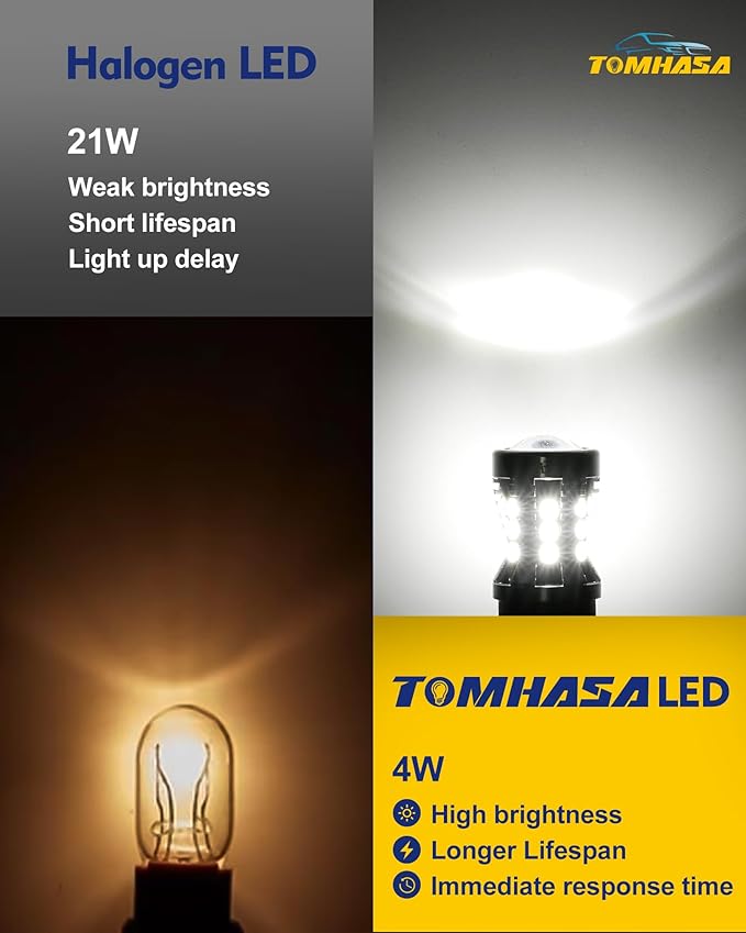- 【Application】Can be used for: backup reverse lights, brake tail lights, blinker turn signal lights, parking lights, daytime running lights, side marker lights, etc. NOTE: 50W 6ohm load resistors may be required when using those led BAY15D 1157 bulbs as turn signal blinker lights