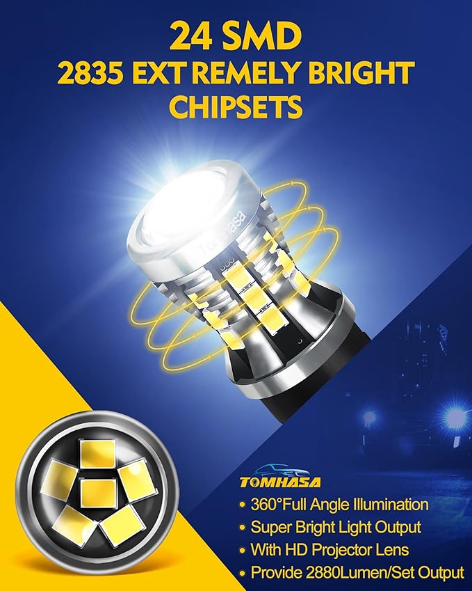 - 【300% Brightness】These 1157 led bulbs come with 24 pcs 2835 SMD LED chipsets, 300% brighter than halogen bulbs. 1440 Lumens per bulb with 360 degrees of illumination