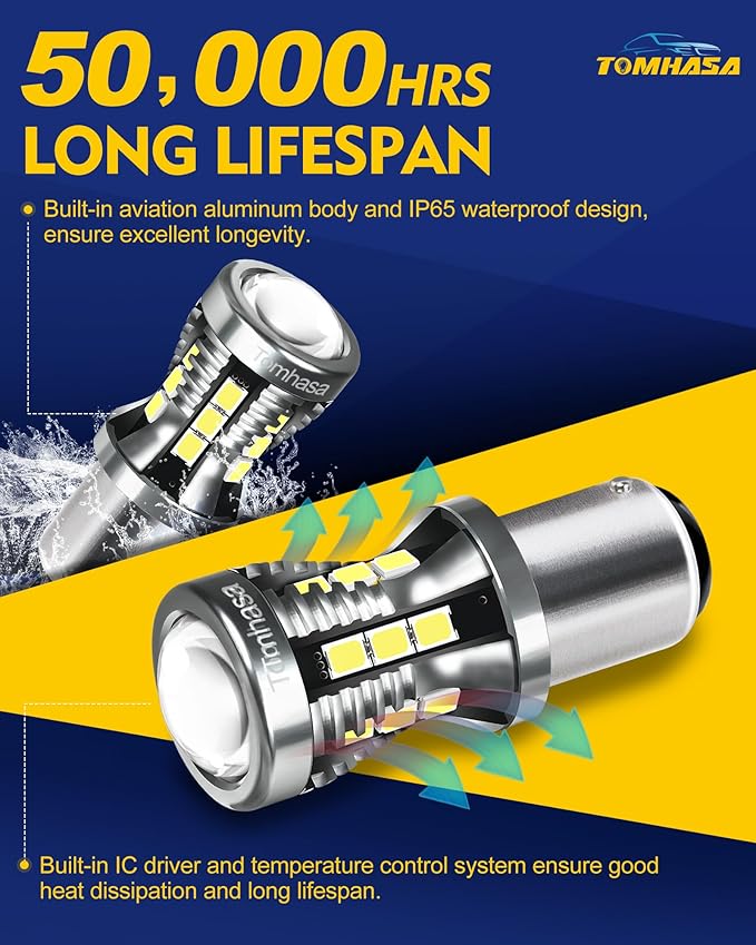 - 【Long Lifespan】 Low power consumption & Built-in intelligent IC driver for longer lifespan. Full aviation aluminum body cooling down the heat rapidly, extends the service time of the 2357 1157 led back up light lamps up to 50,000hrs