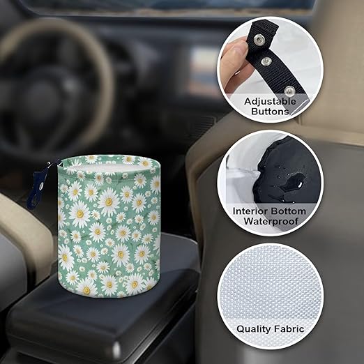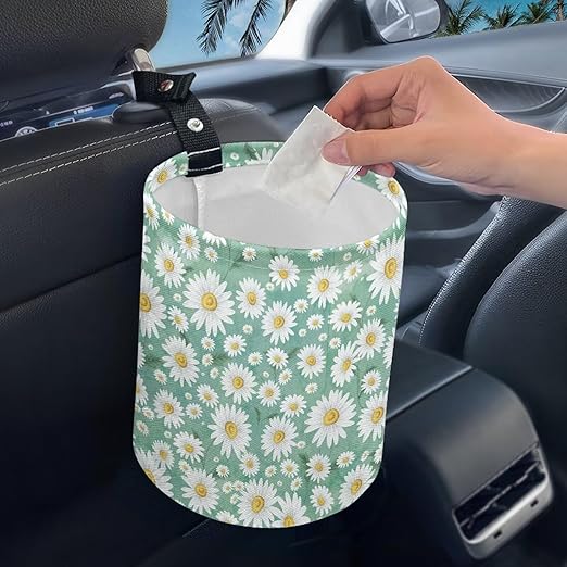 Daisy Cute Collapsible Portable Trash Can for Car Front Seat, Back Seat, Floor, Headrest Rubbish Bin