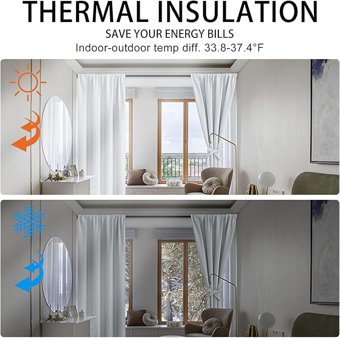 - Thermal Insulated: Our blackout curtains balance temp indoors, insulating summer heat and winter chill, reducing energy waste & bills. Enhance privacy & reduce noise. Perfect for bedrooms, living rooms, kids' rooms. Energy-saving & comfortable