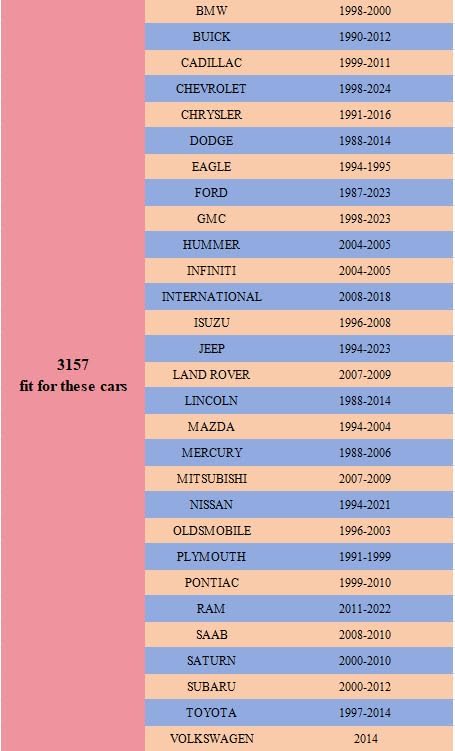 - 3157 brake liight bulb also fits for Ford F-series/Windstar, /F250,-350/Altima,Ram Pickup,Silverado 2007 classic /2006-2003/2002/2001-2000,Corolla/Camry and 2012 Jeep Liberty, Jeep Grand Cherokee Wrangler Commander Compass Journey Primus Edge