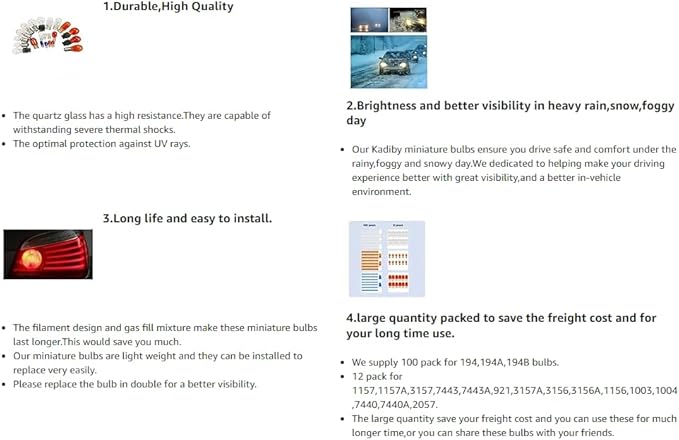 - 194B miniature bulb is suitable for specific car models,please confirm your car model before purchase.
