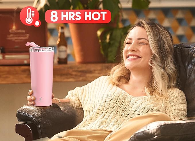 Meoky 24 oz Travel Coffee Mug with Leak-proof Lid, Stainless Steel Insulated Coffee Tumbler, Keeps Hot for 8 Hours or Cold for 24 Hours, Fits in Car Cup Holder (Blush)