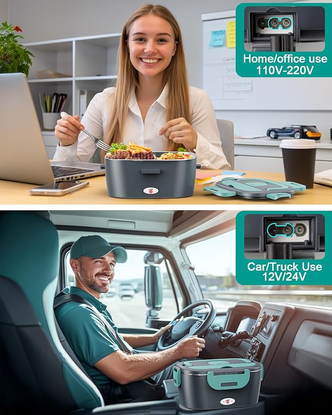 - VERSATILE ELECTRIC LUNCH BOX: The Geveniss Electric Lunch Box is perfect for modern lifestyles, supporting 12V, 24V, and 110V power sources. Ideal for commuting, office meals, or road trips, it includes household and car power cords, ensuring you can enjoy warm meals anywhere
