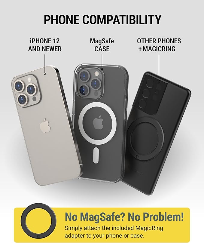 - MagSafe Car Mount: Our magnetic phone stand utilizes MagSafe technology for a powerful, instant attachment for iPhone 16/15/14/13/12/Pro/Pro Max/Plus/Mini, Mag Safe case and accessories. For added convenience each phone holder includes a MagicRing adapter for seamless conversion of older iPhones and Android cell phones