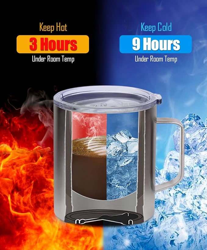 - Insulated Coffee Mug 14 oz: Double-wall vacuum insulation technology to keep beverages hot for 3+ hours and cold for 9+ hours; sweat proof, no condensation, burn free