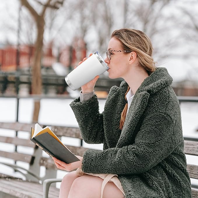 - 【 DOUBLE-WALL VACUUM TUMBLERS 】- Our 20oz tumbler mugs are made of Food Grade 304 18/8 Stainless Steel. The tumblers are with Double-Walled vacuum insulation design, which can keep your on-the-go beverages hot for 3+ hours and cold for 9+ hours. And our tumblers can fit most of the car cup holders. Enjoy your drink for a long time!