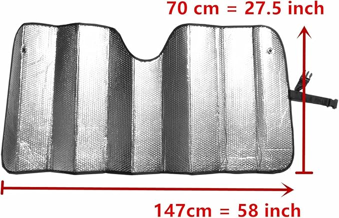 - ★ KEEP CAR INTERIOR COOL: Windshield Sunshade- 5-Layer Super Reflective Insulation:1.Aluminum Film Reflective Insulation 2.Honeycomb Bubble Insulation 3. Insulation Layer 4.Honeycomb Bubble Insulation 5.Aluminum Film Reflective Insulation,Reduces Interior Car Temperatures By 30-50 Degrees.Blocks Damaging UV Rays, Keeps Car Cooler On Sunny Days.