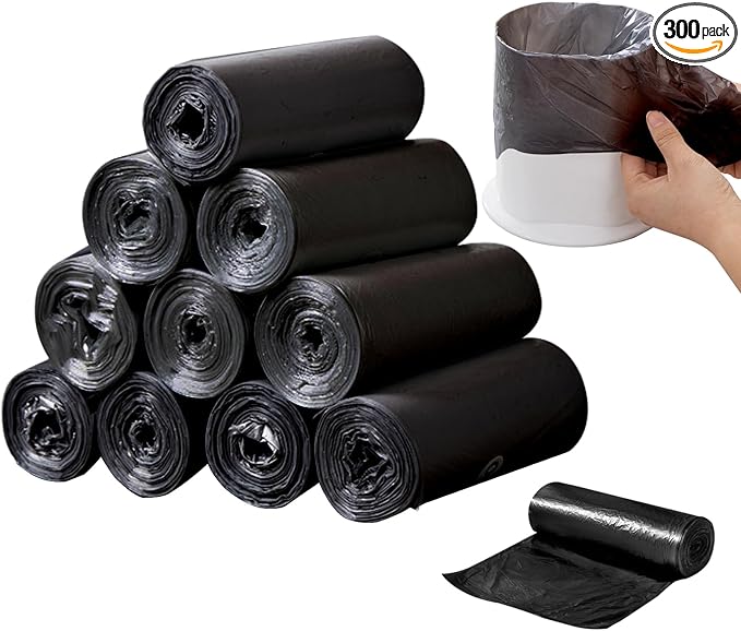 - Size for small trash can: 13.8 inch/35cm*11.8 inch/30cm; 300 counts of 10 rolls (30 count per roll). 0.5 gallon for 3 liter or smaller trash cans. Black color.