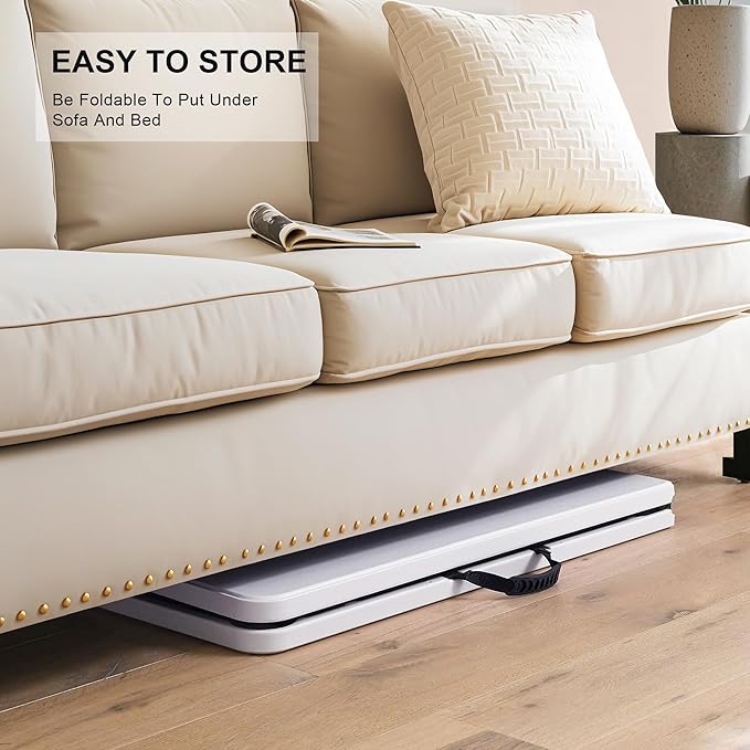 - 🏕️【Quick Foldable and Easy Portable】-- VECELO plastic folding table, easy assembly just for 30 seconds to save time. This 6 ft foldable table folds into the center, locks closed and is compact and easy to store. Comes with a comfortable carry handle for you to carry it easily to go anywhere anytime. You can put the folding table into the trunk,then go out for camping anytime.