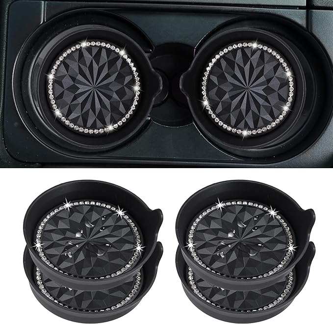 - Bling Crystal Rhinestone Design: The stylish bling design is a good interior decoration to your car. You can't miss these utility and beautiful cup holder coasters.