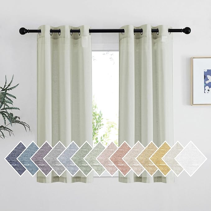 NICETOWN Sage Green Sheer Curtains 48 inches Long, Grommet Linen Blend Semi Sheer Privacy with Light Filtering Short Window Treatments for Bedroom/Cafe/Kitchen, W36 x L48, 2 Panels