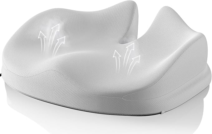 - đ§˝ăErgonomicăThe Ergonomic Seat Cushion is scientifically contoured to cradle your thighs & hip and help you sit upright up on any chair.