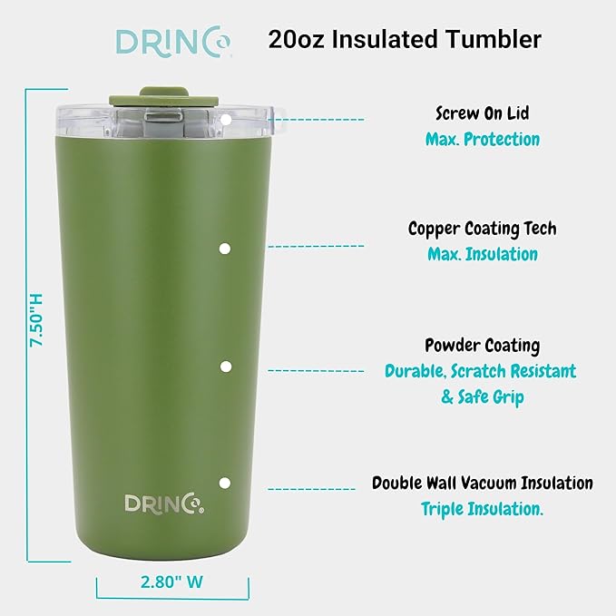 Drinco - 20 oz Stainless Steel Tumbler | Double Walled Vacuum Insulated Mug With Lid, 2 Straws, For Hot & Cold Drinks (20oz Forest, 20oz)