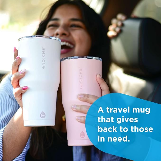 GROSCHE Yukon 30 oz Insulated Coffee Mug with Lid - Durable Travel Mug, Stainless Steel Tumblers, Vacuum Insulated Coffee Tumbler for Hot or Cold Beverages - CREAM WHITE