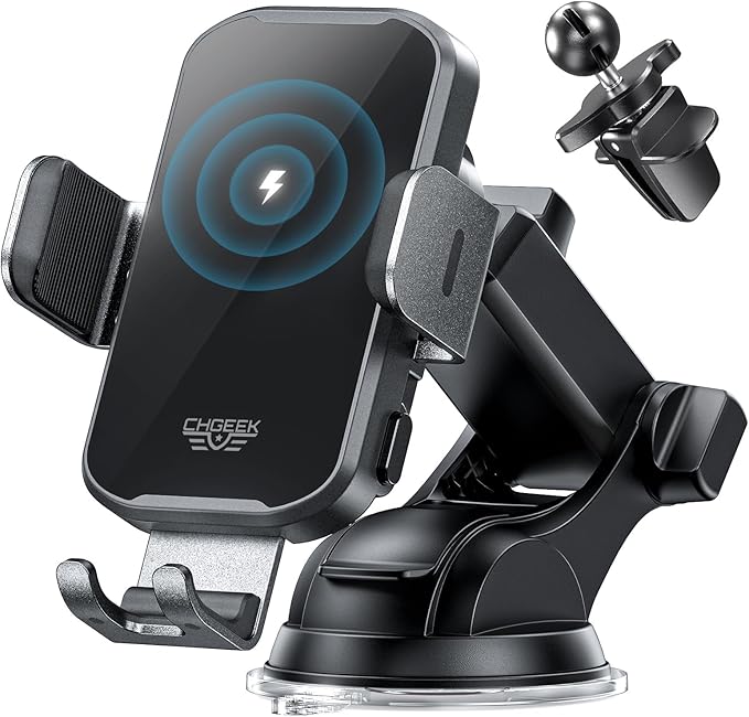 CHGeek Wireless Car Charger Phone Holder Mount, 15W Fast Charging Auto Clamping Phone Holders for Your Car Dashboard Windshield Air Vent Car Accessories for iPhone, Samsung Galaxy, Google Pixel etc