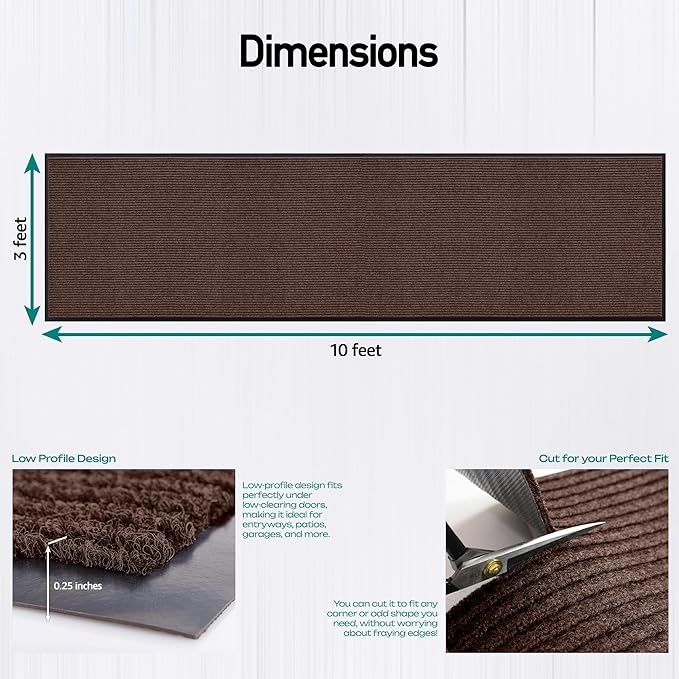- EASY MAINTENANCE – This 10 x 3 feet commercial mat is simple to clean—just shake, vacuum, or hose it down for a fresh and polished appearance.
