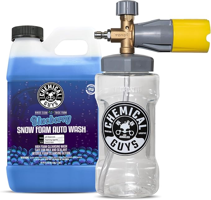 Chemical Guys Big Mouth Max Release Foam Cannon and Blueberry Snow Foam Car Wash Soap, 64 fl oz (Car Wash, Home Wash & Boat Wash Foam Cannon Connects to Your Pressure Washer) 34 oz Bottle (2 Items)
