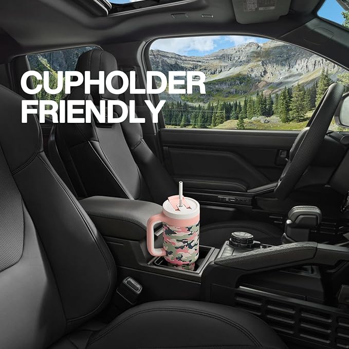 - On-the-go buddy: Cruise through with sips and without breaks; our 40 oz tumbler with handle fits most car cupholders, so you'll need fewer refills for endless road fun