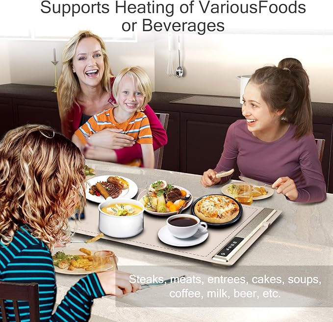 - Efficient & Full-area Heating: Large heating area, fast and even heating. Allowing you to flexibly place tableware as needed while keeping food at the perfect temperature.