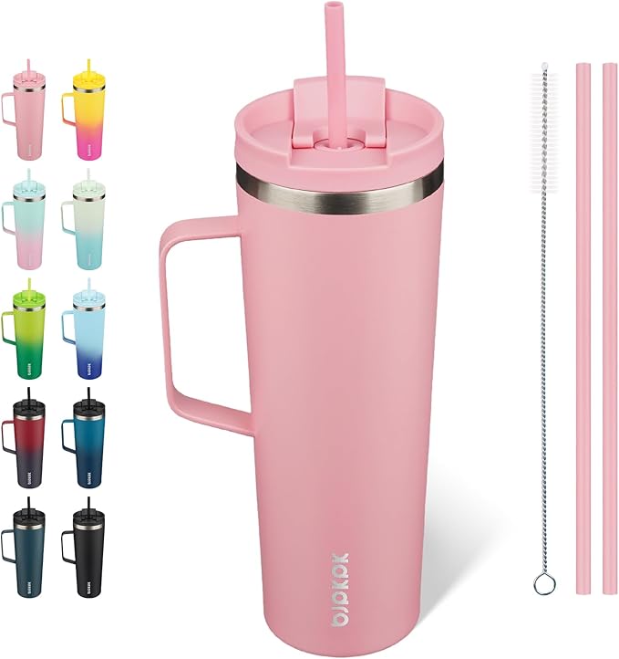 BJPKPK Insulated Tumbler with Handle, 30oz Insulated Tumblers with Lid and Straw, Stainless Steel Metal Water Bottles, Coffee Travel Mugs, Cups, Light Pink