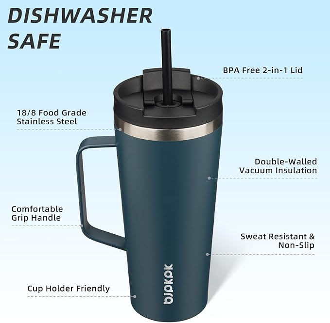 BJPKPK Insulated Tumbler with Handle, 22oz Insulated Tumblers with Lid and Straw, Stainless Steel Metal Water Bottles, Coffee Travel Mugs, Cups, Navy Blue