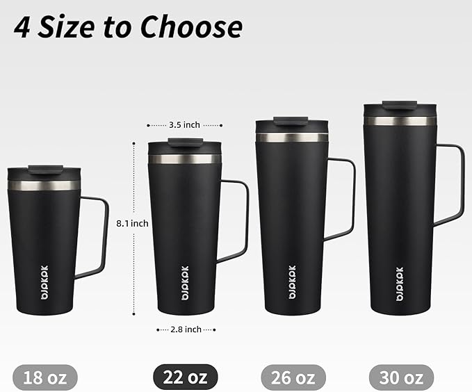 - 18/8 PREMIUM STAINLESS STEEL COFFEE MUG: Made of food-grade 18/8 stainless steel, coated with environmental anti-slip powder at the surface, fully resistant to oxidation, BPA free, rust and flavor transfer, a perfect insulated tumbler for your daily water drinking.