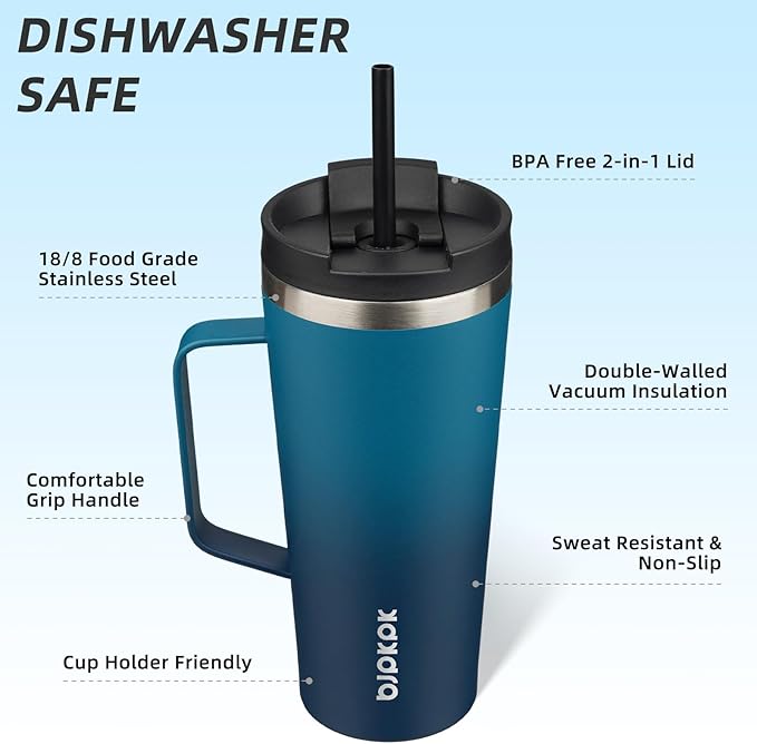 BJPKPK Insulated Tumbler with Handle, 22oz Insulated Tumblers with Lid and Straw, Stainless Steel Metal Water Bottles, Coffee Travel Mugs, Cups, Sea