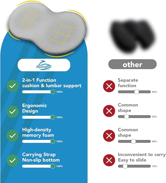 - DESIGNED FOR COMFORT - kingphenix car seat cushion combines ergonomic design and memory foam technology to provide exceptional comfort and support. The wedge shape helps improve posture and alleviate pressure on the waist, legs, and buttocks. It is the ideal choice for long drives and daily work, offering the perfect solution for extended periods of sitting