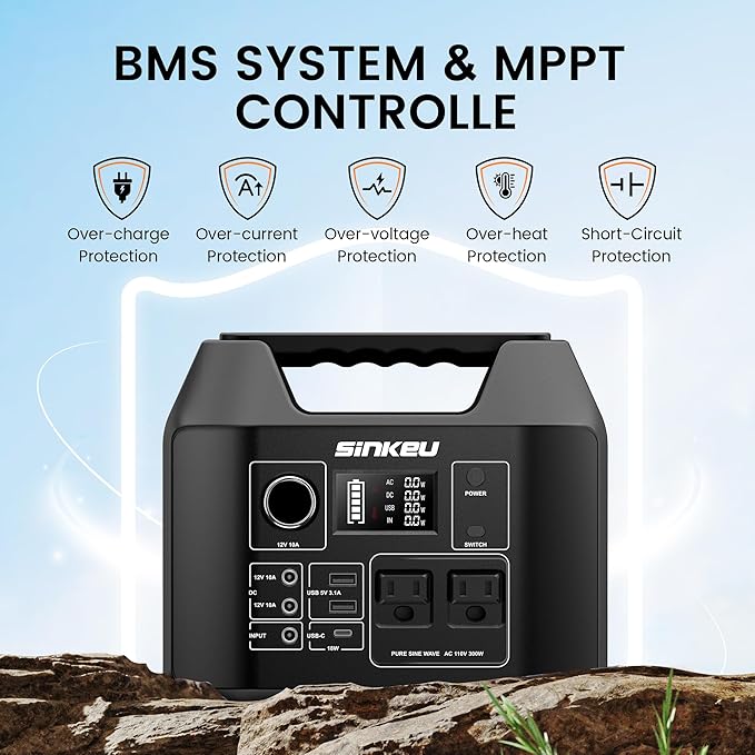 SinKeu Portable Power Station 80000mAh,256Wh LiFePO4 Battery Backup,300W AC Outlets, Power Bank for Hurricane Emergency Outdoor Camping RVs Home