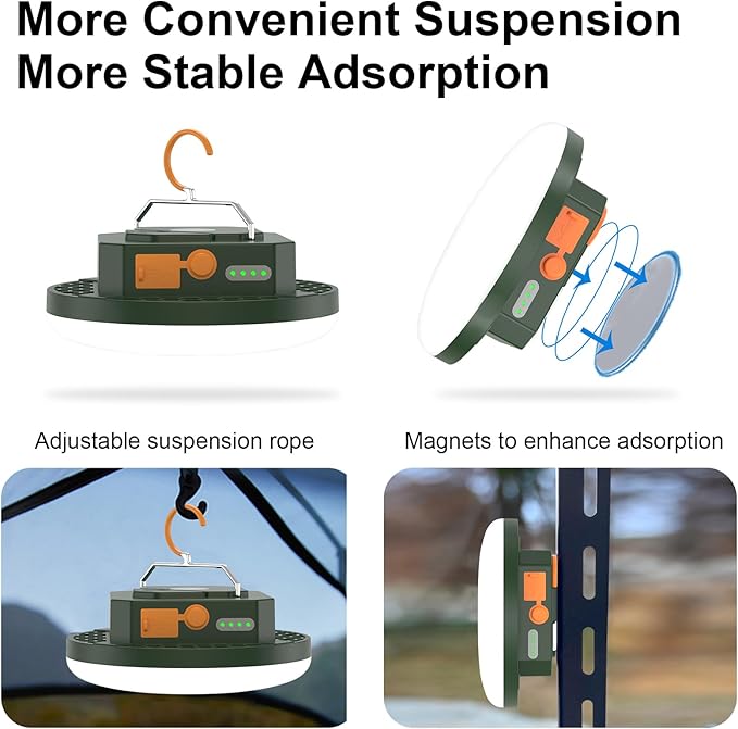 2pcs 10000mAh Rechargeable 3000LM Tent Light Camping Light, 6500K 24Hours Long Play Time , Outdoor Night Market Light Night Fishing Light Emergency Lights for Hurricane Tsunami disasters (Green)