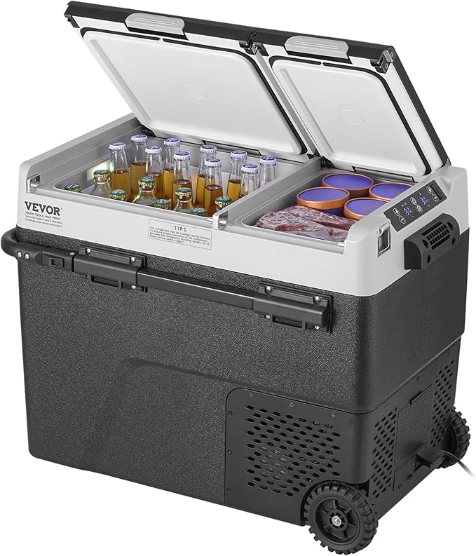 VEVOR Portable Car Refrigerator, 12 Volt Car Refrigerator Fridge, 58 L / 61.5 QT Dual Zone Portable Freezer, -4℉-68℉ Adjustable Temperature, Compressor Cooler for Home, Outdoor, Camping, RV, Car