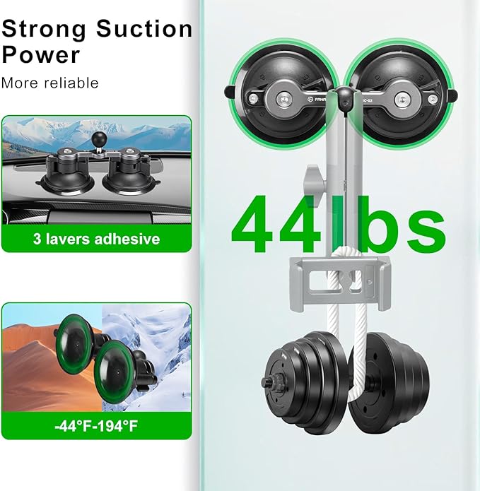 - Heavy-Duty Universal Car Phone Mount with 360° Rotation - Engineered for outdoor enthusiasts, our dual-layer aluminum alloy frame and 3.3" heavy-duty suction cup deliver military-grade stability. Withstands 32kgf pull force and -4°F to 194°F extremes, this GPS-compatible mount securely holds devices on windshields, dashboards, or tile surfaces during off-road adventures.