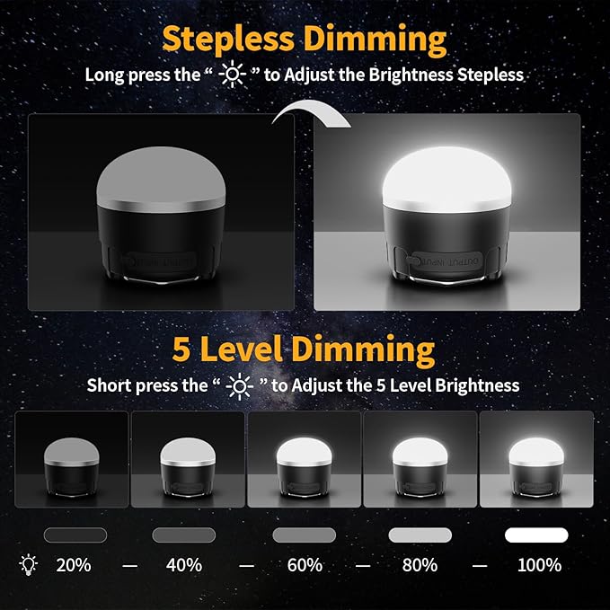 - 【Various Uses and After-Sales Service】You will receive 1* camping light,1* leather wrist strap, 1* fluffy bag, 1* 1m Type C cable. As an outdoor camping light, it can be used for tent lighting, night fishing, barbecue, overnight in the car and daily use. We offer a 180-day replacement or risk-free money-back warranty on our outdoor waterproof camping lights. If you have any questions about our indoor and outdoor lights,please contact us immediately and we will try our best to solve your problem.