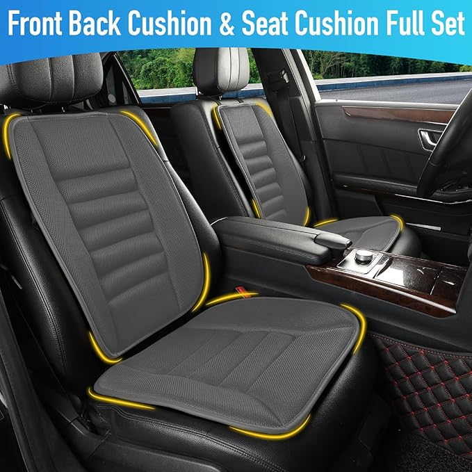 - Comfy Back Cushions & Seat Cushions Set - You will get car seat cushion(1PC) & car back support(1PC). High-density memory foam seat cushion supports the back, butt, sciatic, tailbone & coccyx. Car cushion with back keep its original shape after long sitting and offers more comprehensive comfort