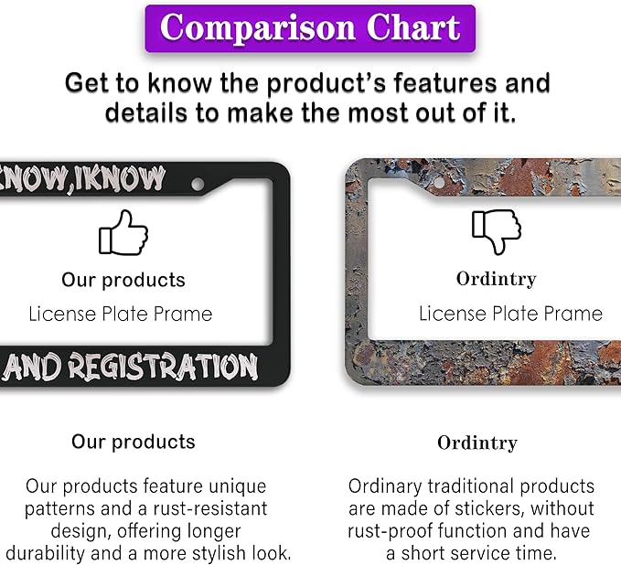 - FUNNY DESIGN: Featuring a unique and customized design, this license plate frame creates an eye-catching and bold statement for your vehicle. Not only does it add a touch of personality to your car, but it also makes for a great holiday gift, souvenir, or decorative piece for family, friends, and colleagues. Elevate your vehicle's style while sharing a laugh!