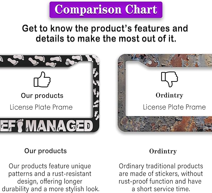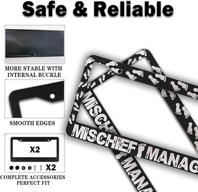 - FUNNY DESIGN: Featuring a unique and customized design, this license plate frame creates an eye-catching and bold statement for your vehicle. Not only does it add a touch of personality to your car, but it also makes for a great holiday gift, souvenir, or decorative piece for family, friends, and colleagues. Elevate your vehicle's style while sharing a laugh!
